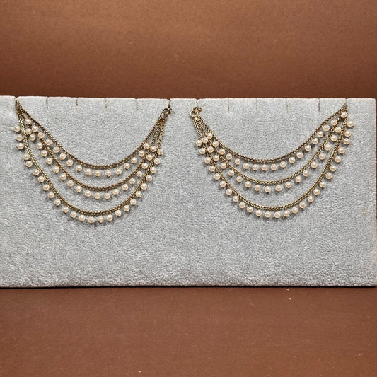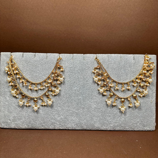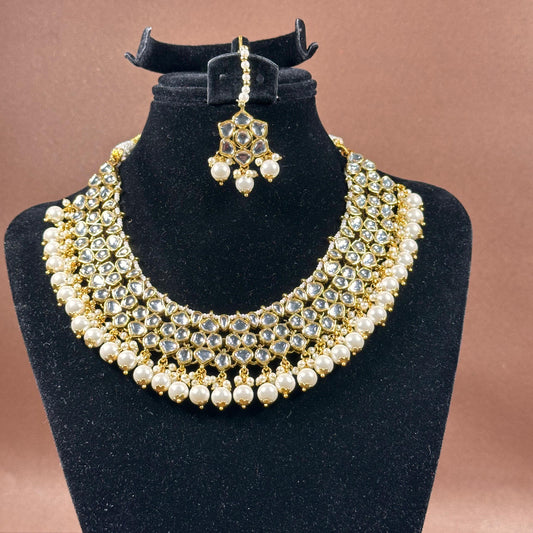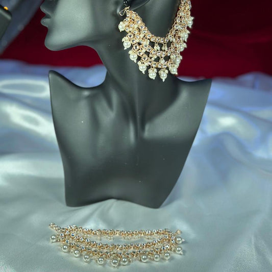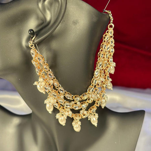 Kundan Matha Patti with Pearls and Beads White and Gold Color