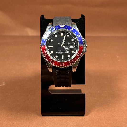 Luxury Oyster Style Men’s Watch – Black Dial with Pepsi Bezel
