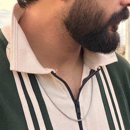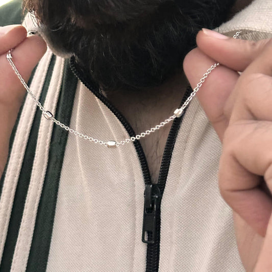 Men's Silver Rectangle Shaped Ball's Chain Necklace