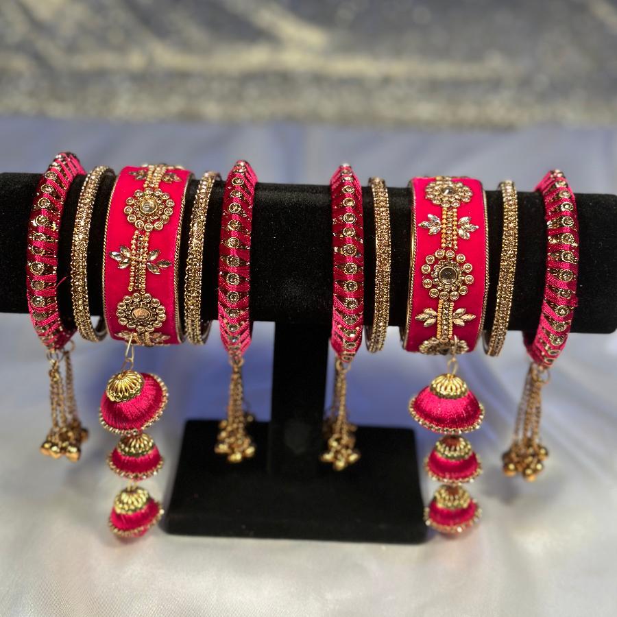 With the ability to customize the color, these Pink Embroidery Hand Work Bangles can be tailored to match your unique style and preferences. Embrace the beauty of tradition with a modern twist, and let these Pink Embroidery Hand Work Bangles become a cherished part of your jewelry collection.