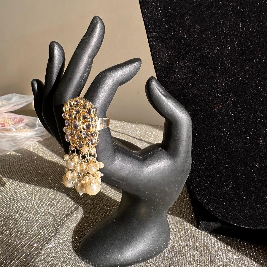 Kundan Jewelry Necklace Set With Ring and Earrings Gold And White